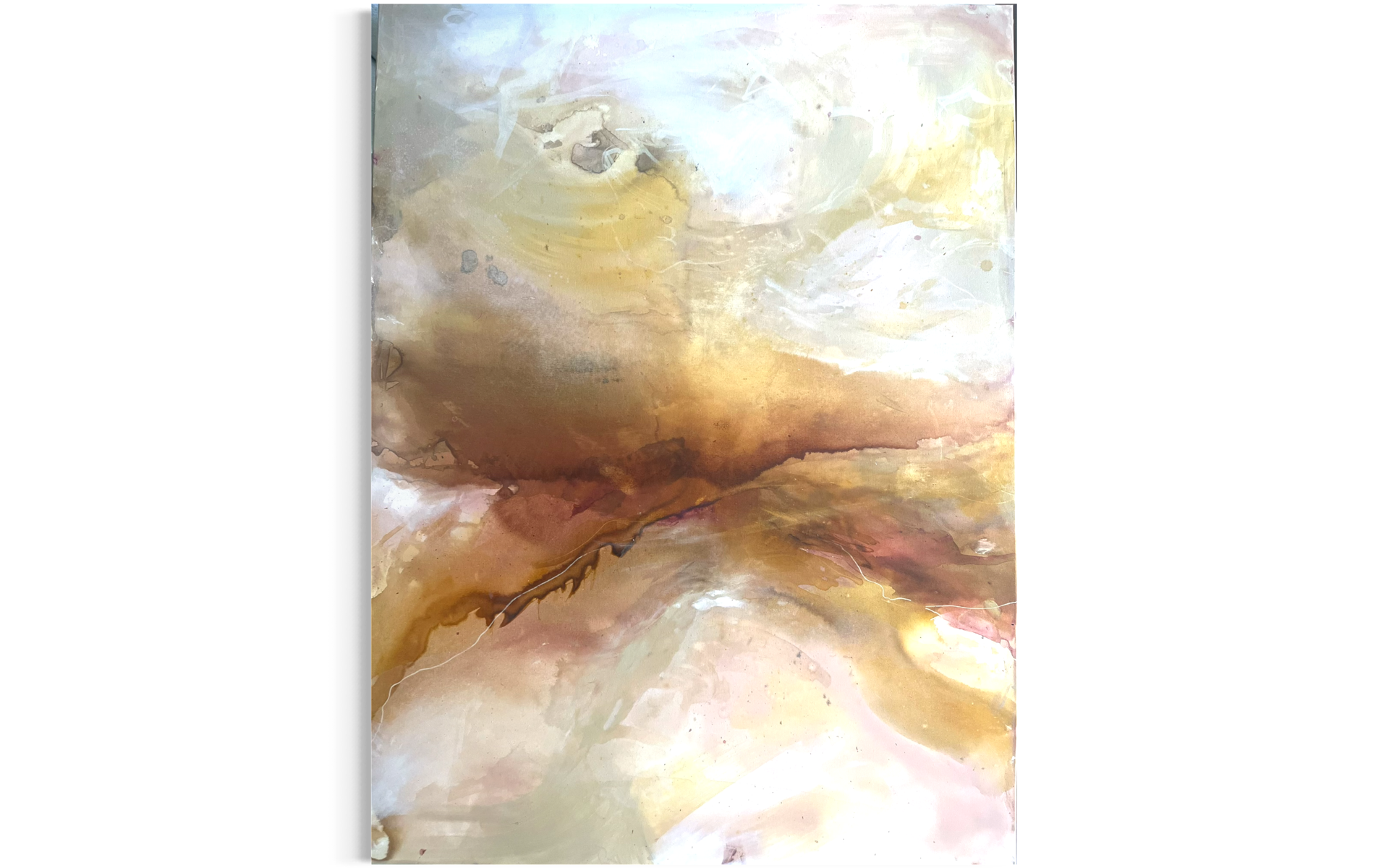 This huge piece was the first of this season of my painting life. It was a turbulent mix of post-partum me after my third child and the feeling, I’d lost a part of me that needed to return. This is an extremely powerful artwork that will always be close to my heart and home. It blends the mix of a beautiful scenario that is covered in chaos - which I believe in the fundamental building blocks of parenting.